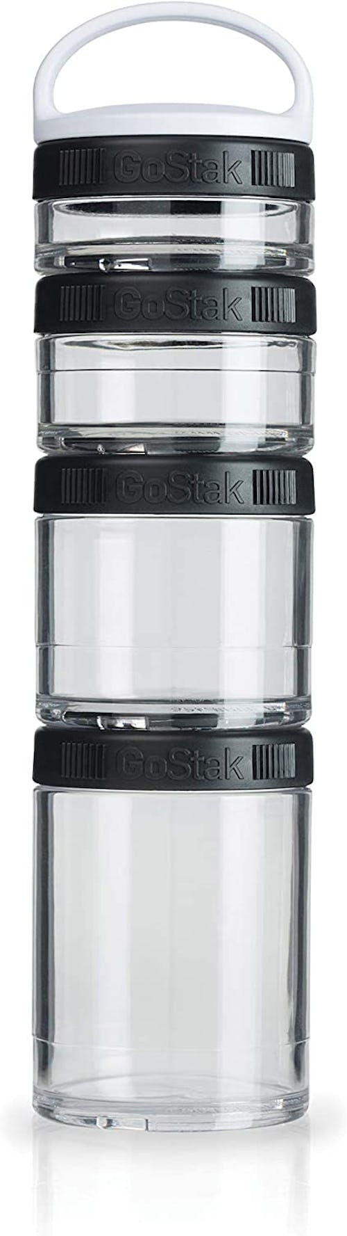 Perfect for the snacker, the packer, or the nutritionist of the group, there are these GoStak Twist n' Lock storage jars. Four different sized twist-lock jars secure one on top of the other for a bottle-like shape that's easy to take anywhere. It even fits inside the BlenderBottle, and everything is BPA-free and dishwasher safe. The handle makes them easy to take with you, and you can carry a variety of different powders, supplements, and snacks in the each mini container.