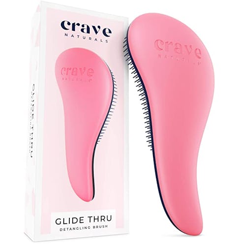 The Crave detangling brush has been called a "must have" for curly, thick, or easily-knotted hair, whether you're a kid or an adult. It uses unique cone-shaped plastic bristles that separate the hair sideways instead of down, which untangles without pain, snagging, or breakage. It's fit for both wet or dry use, and it even smooths the cuticle, improving shine and manageability.