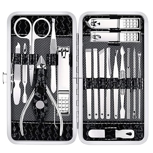 This 18-piece beauty set is extra hygienic and durable, because everything's made out of quality stainless steel. It comes with everything you need to clip, trim, tweeze, and file your way to gorgeous nails — think toenail and nail clippers, scissors, push sticks, and cuticle cutters — and all of it comes in a convenient carrying case for easy travel. This all-inclusive set has over 12,000 five-star ratings on Amazon.