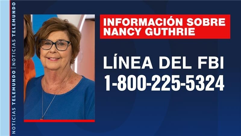La familia ofrece hasta un millón de dólares por información que conduzca a la recuperación de la mujer de 84 años. El FBI ofrece una recompensa de hasta 100,000 dólares por «información que conduzca a la recuperación de Nancy Guthrie y/o al arresto y condena de cualquier persona involucrada en su desaparición".
