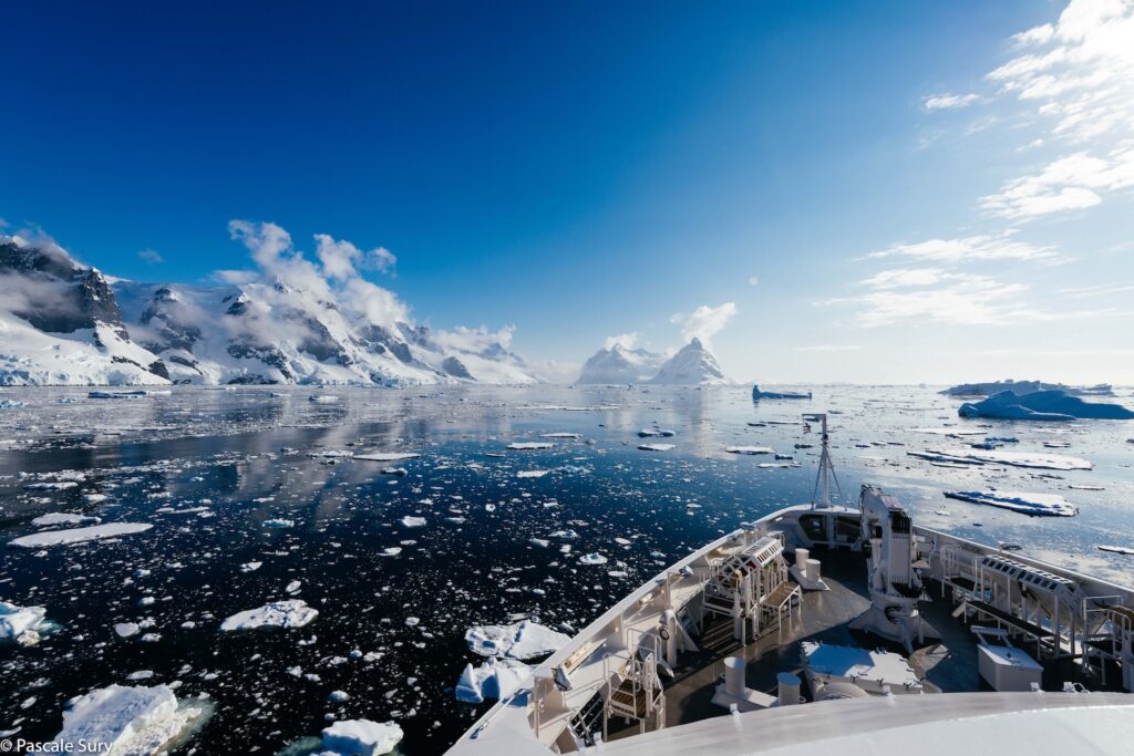 L’Antarctique – pôle Sud – est un continent de 14 millions de kilomètres carrés. On l’appelle souvent le septième continent ou le continent blanc. Il est composé de 98% de glace. Il faut savoir que si toutes les glaces de l’Antarctique venaient à fondre, le niveau des mers monterait de 60 mètres. À l’heure où tous les signaux sont au rouge par rapport au réchauffement climatique, je n’ai plus envie de participer au fait d’amener des gens dans les régions polaires.