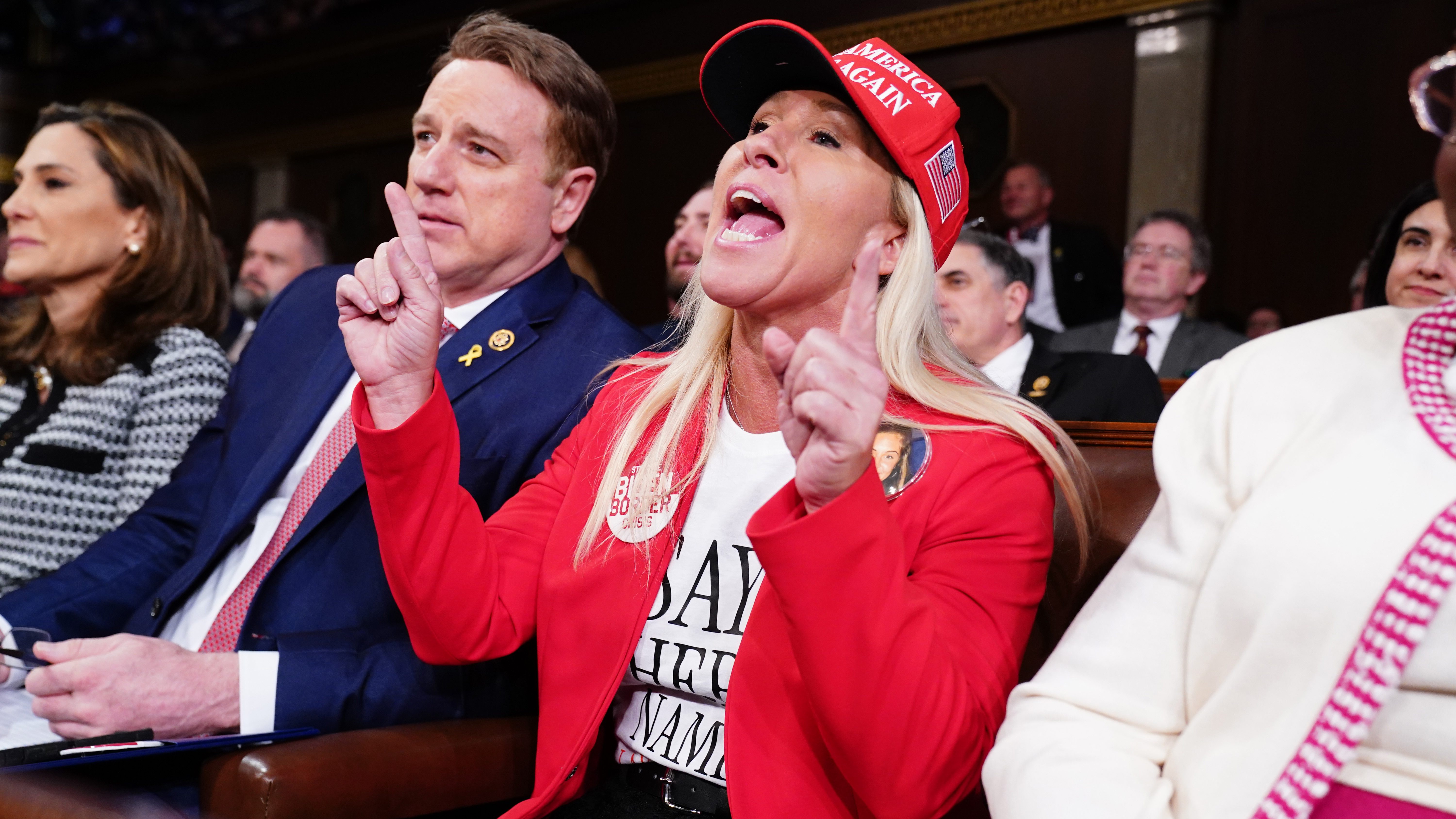 While then-President Joe Biden delivered his State of the Union address in 2022, Greene stood up and began chanting “Build the wall,” referring to the U.S.-Mexico border wall that Trump began in his first term.