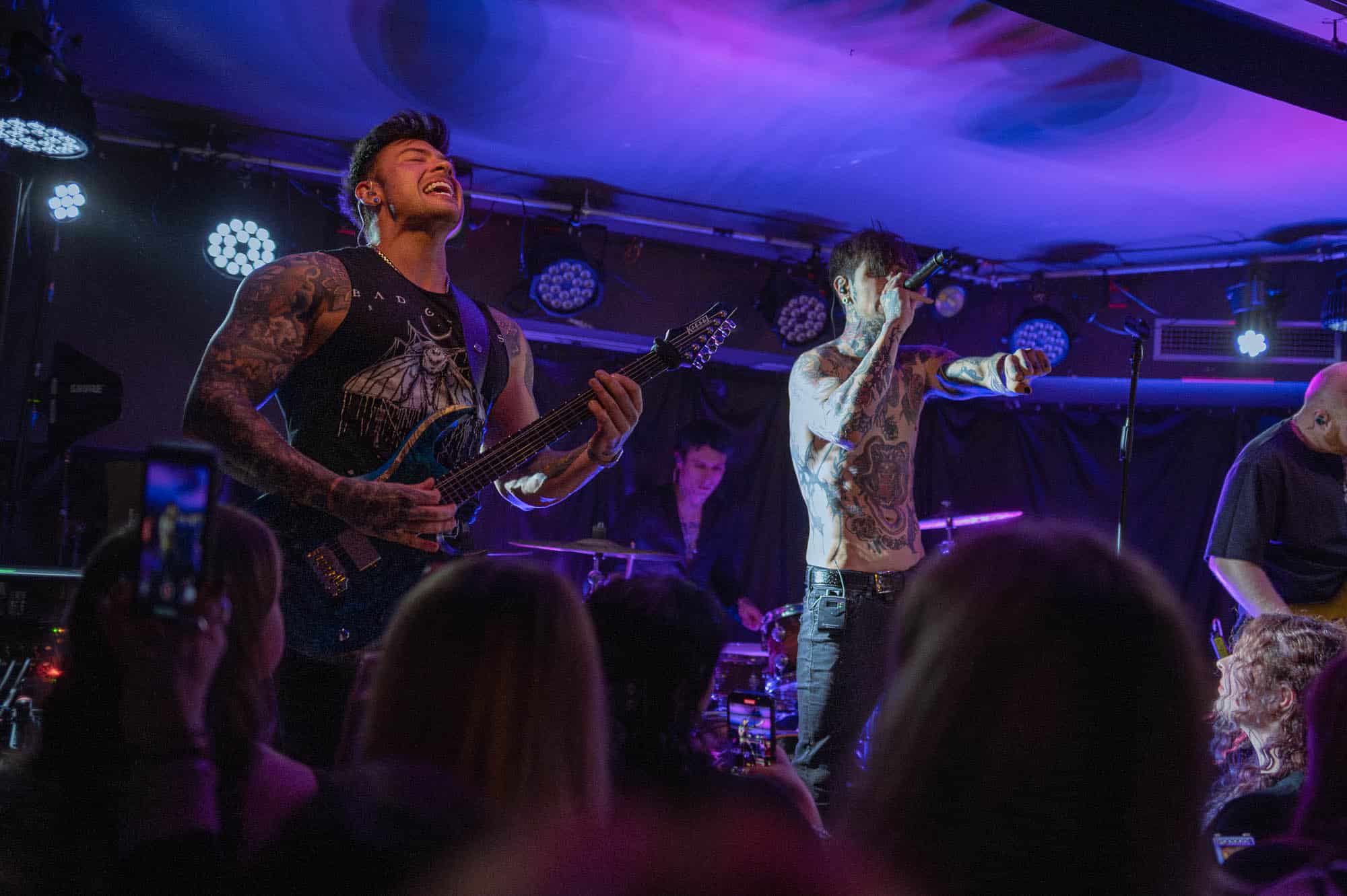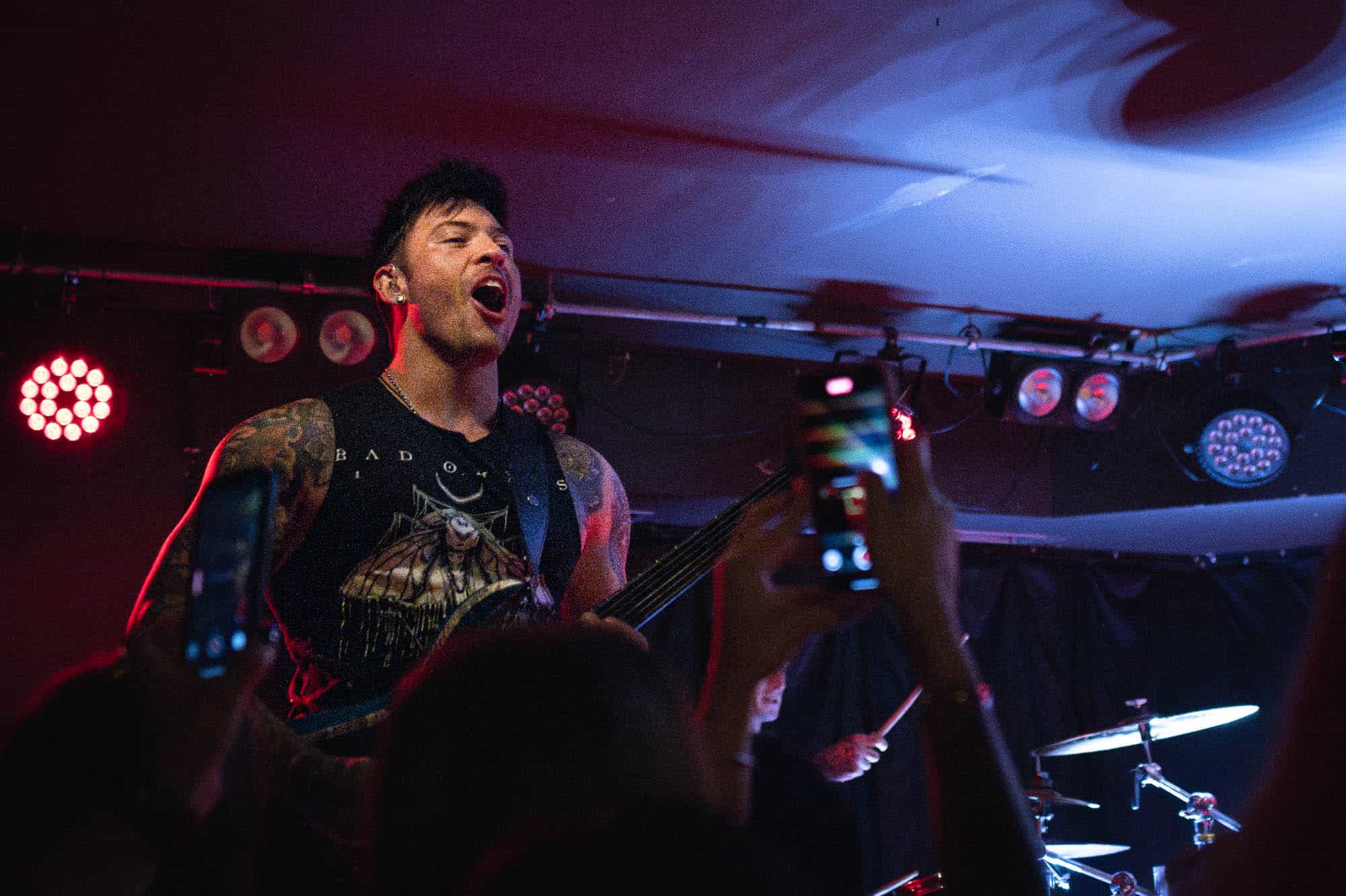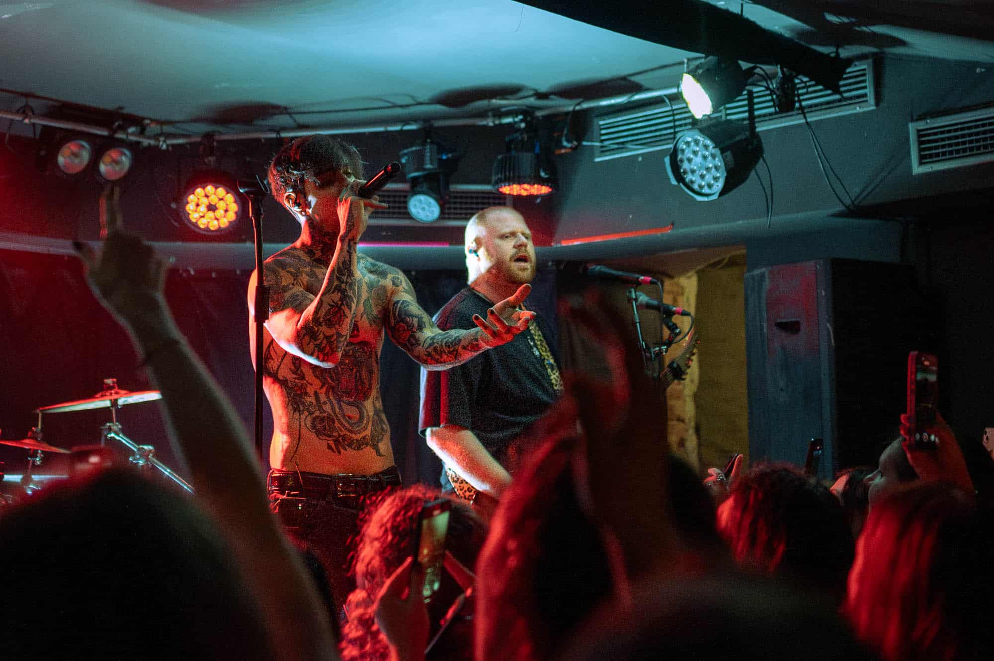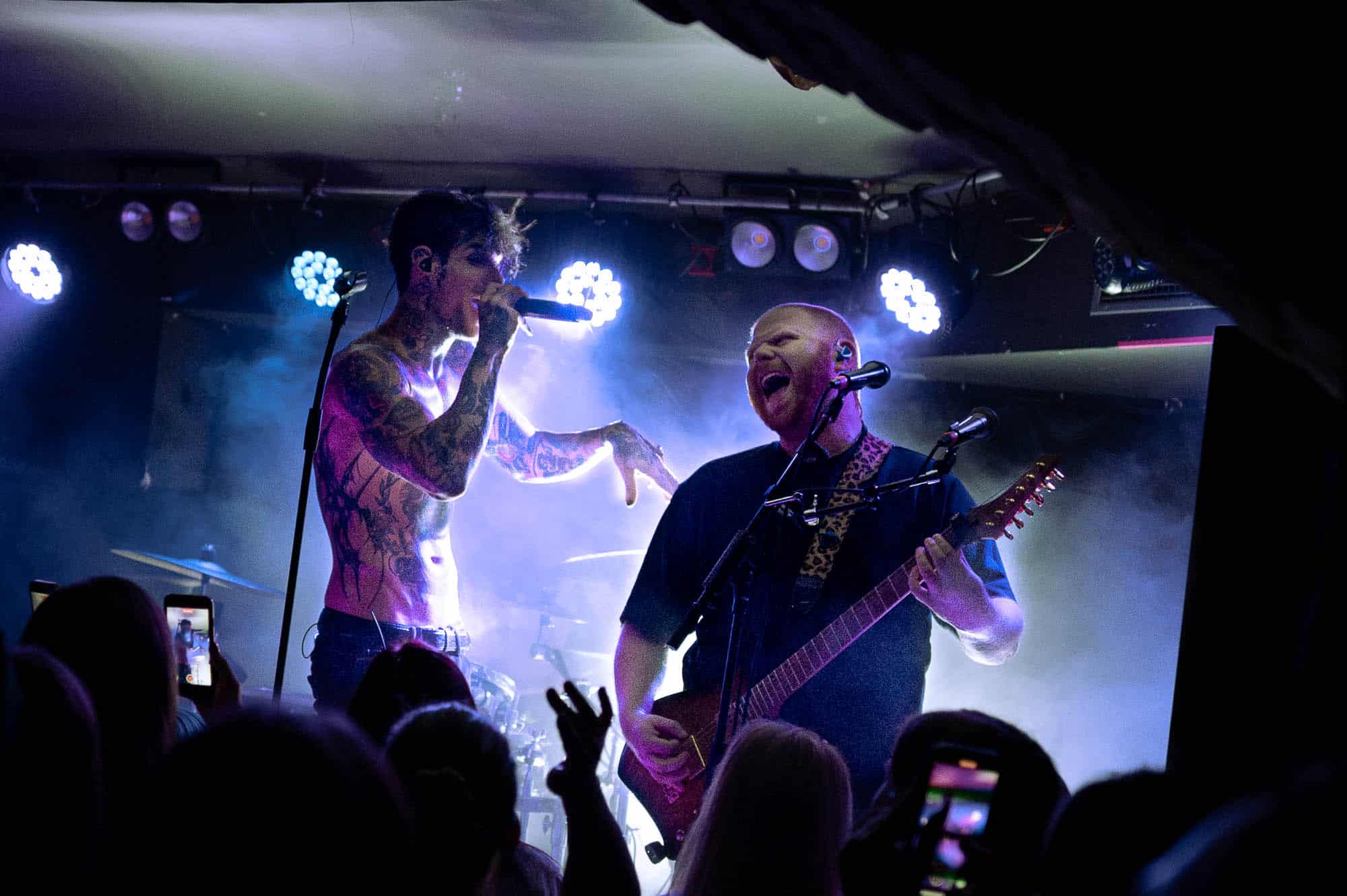 The duo wasted no time bringing the energy. They strutted across the small stage like they owned it, dynamic in their interactions with each other and with the crowd. We were particularly impressed by Di Paolo’s vocal performance — his transitions between melodic singing, harsh vocals, and even some rapping were smooth and seamless, displaying his talent right out of the gate.
