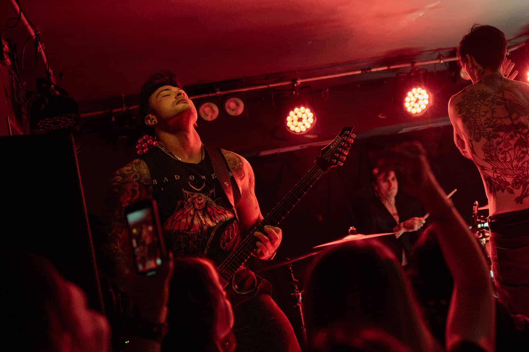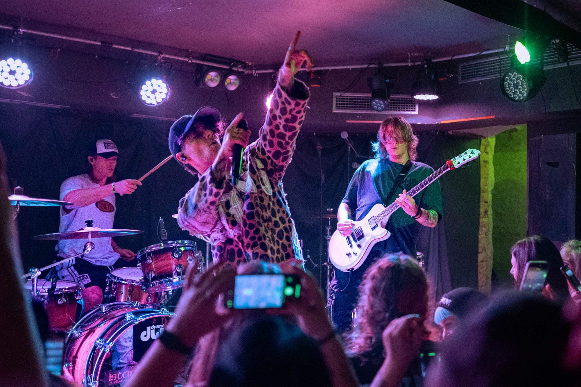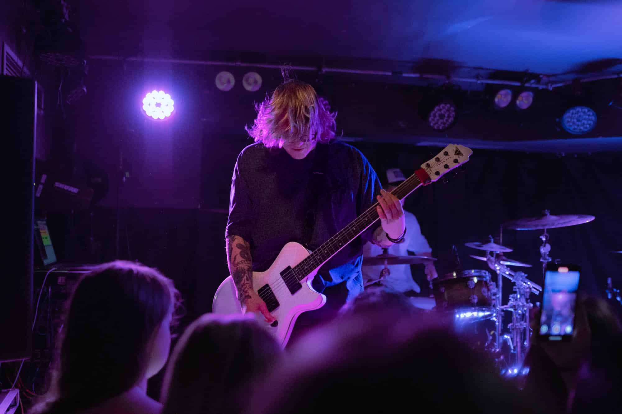 The duo wasted no time bringing the energy. They strutted across the small stage like they owned it, dynamic in their interactions with each other and with the crowd. We were particularly impressed by Di Paolo’s vocal performance — his transitions between melodic singing, harsh vocals, and even some rapping were smooth and seamless, displaying his talent right out of the gate.