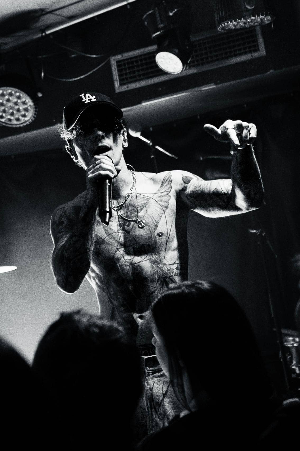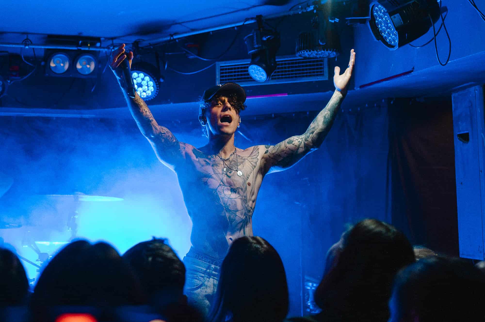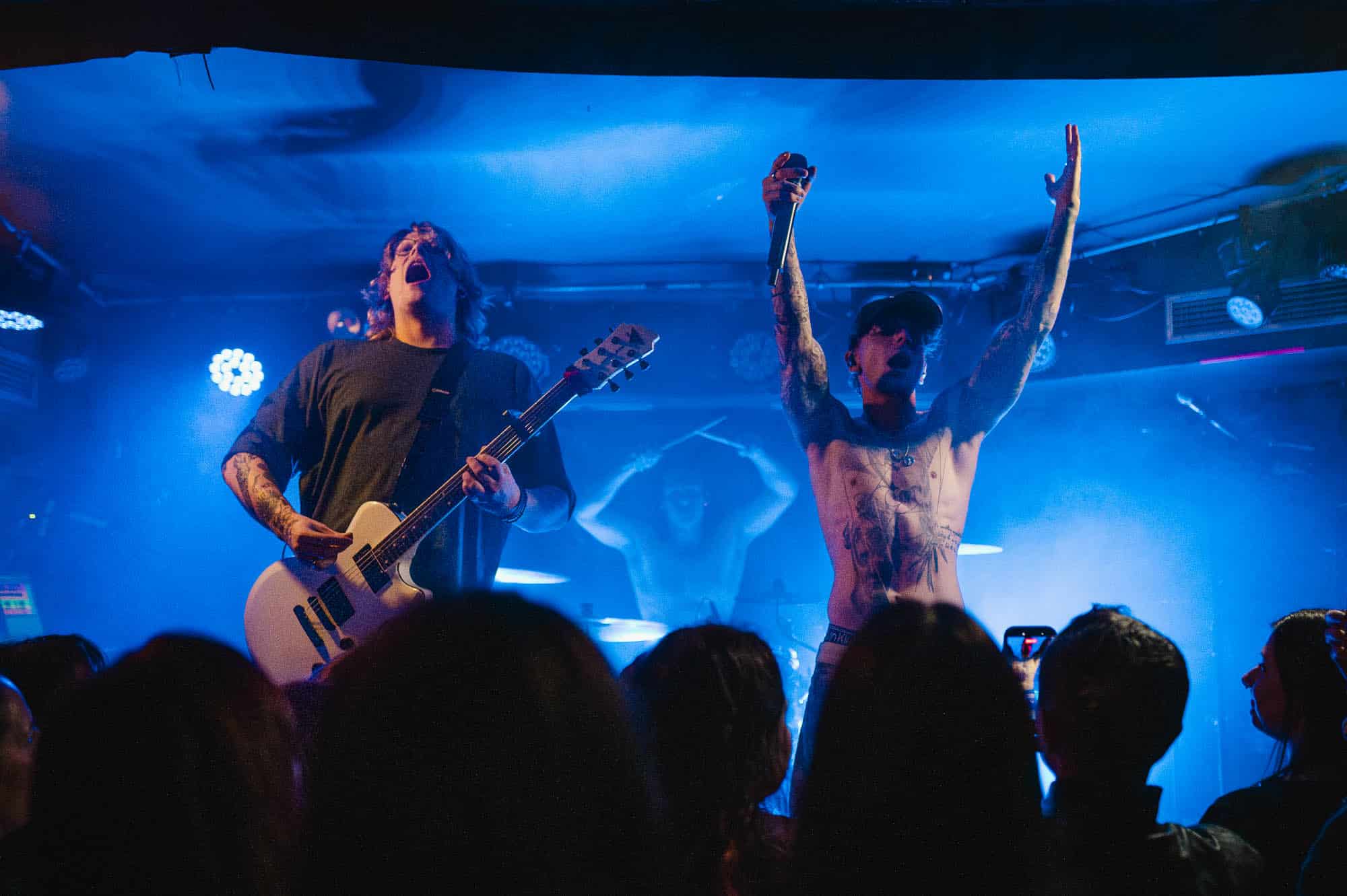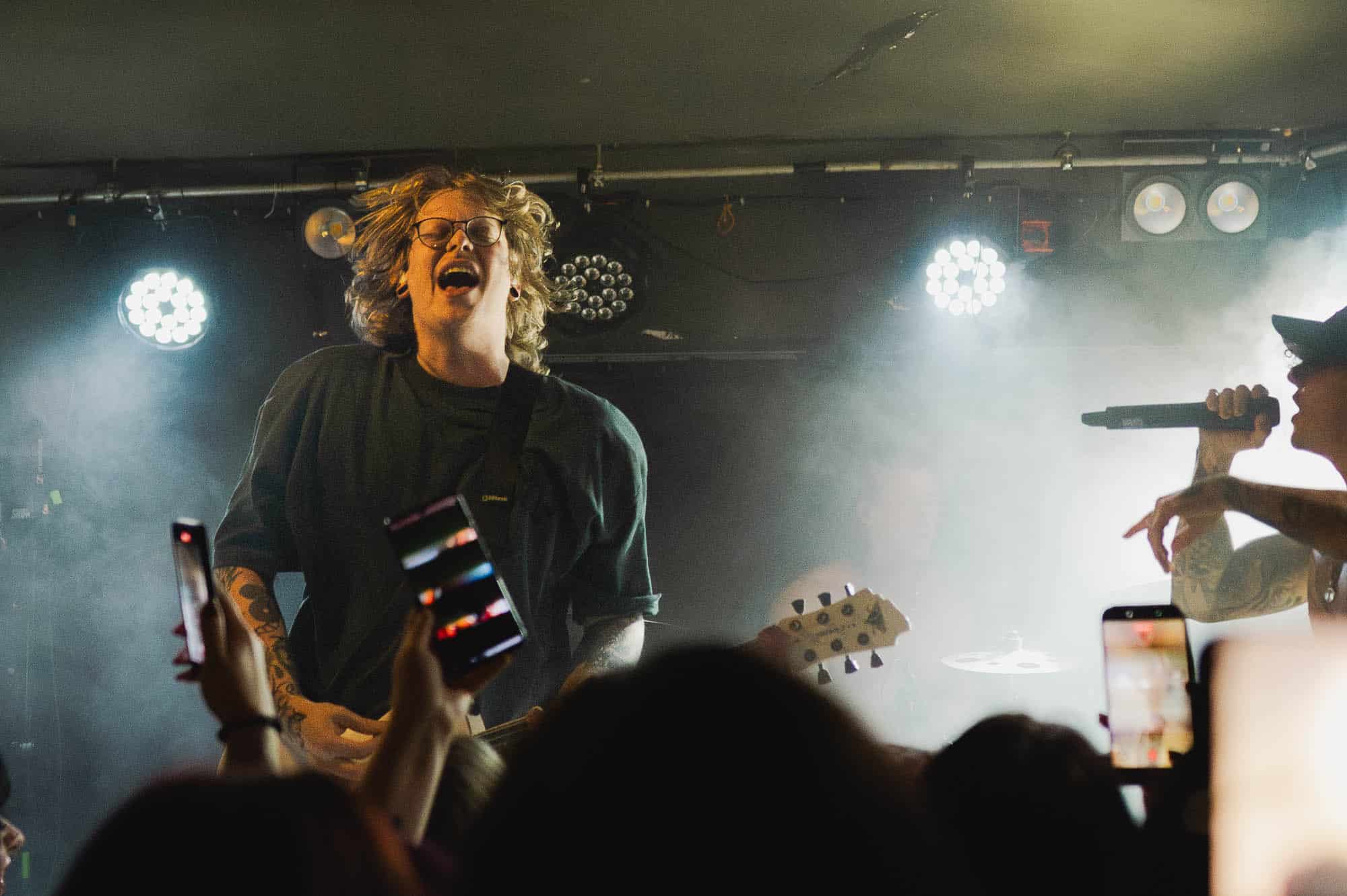 The duo wasted no time bringing the energy. They strutted across the small stage like they owned it, dynamic in their interactions with each other and with the crowd. We were particularly impressed by Di Paolo’s vocal performance — his transitions between melodic singing, harsh vocals, and even some rapping were smooth and seamless, displaying his talent right out of the gate.