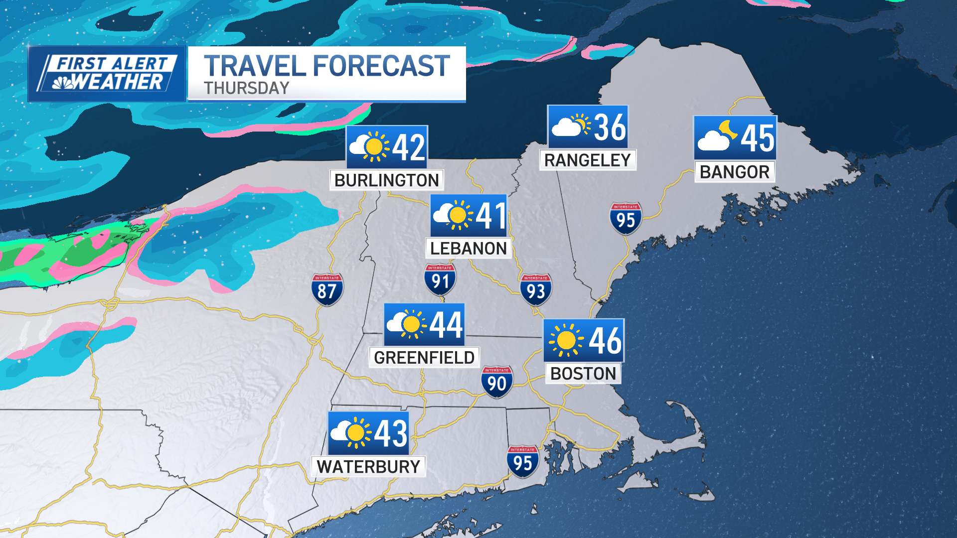 Rain scooted out quickly this morning on this busy travel day. We’re left with a lot of clouds, a smidge of sunshine, and very mild temperatures. Highs could reach to 60/61 with enough sun. Breezes will be light and travel across New England will be in fine shape.