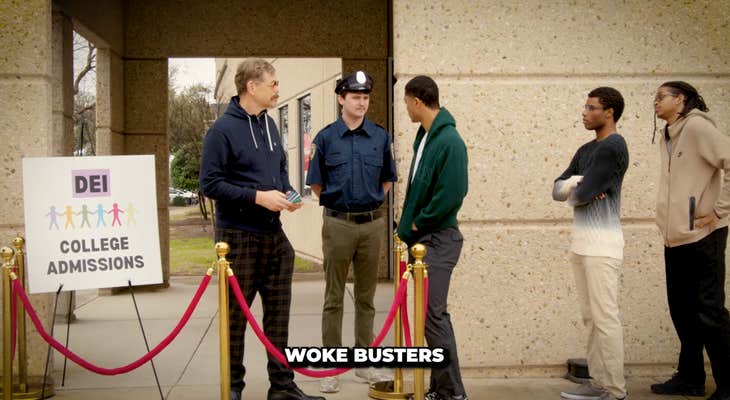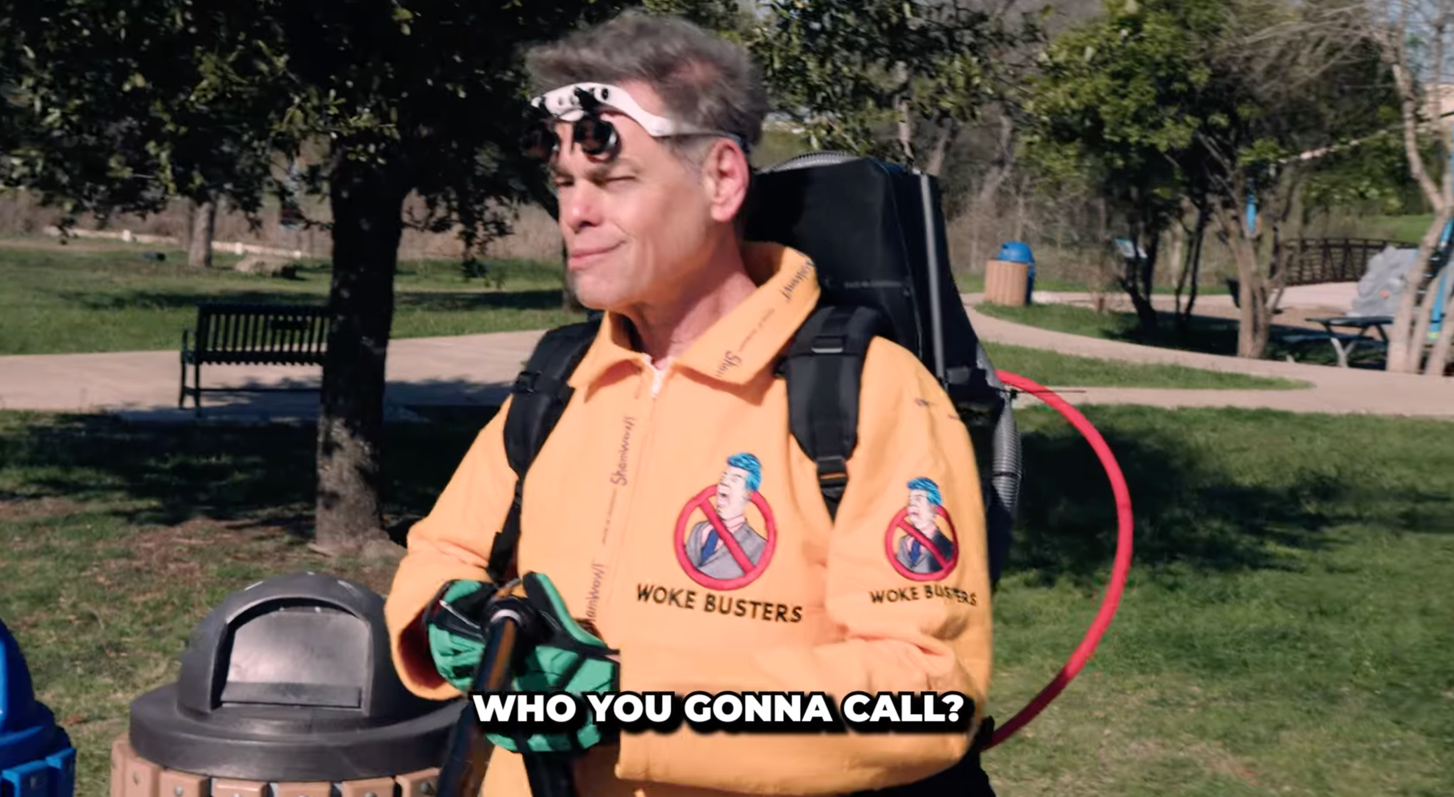 Meanwhile, Shlomi's public social channels feature spoof comedy videos built around transphobic and “anti-woke” themes, including one called "Wokebusters."