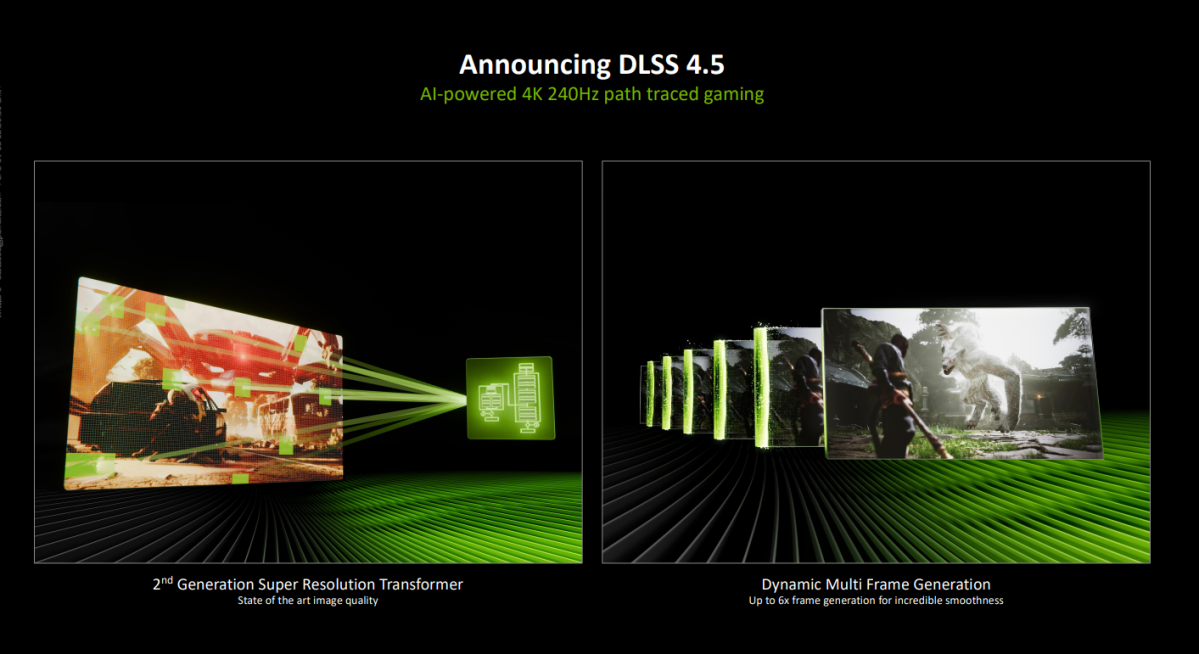 That’s not all. DLSS 4.5 includes enhanced AI training for extended failure modes (which should hopefully mean fewer visual artifacts), a new 2nd generation “transformer” model with enhanced visuals, and better image quality all around. The proof will be in the pudding, but if DLSS 2, 3, and 4’s success is anything to go by, the pudding could be mighty delicious indeed.