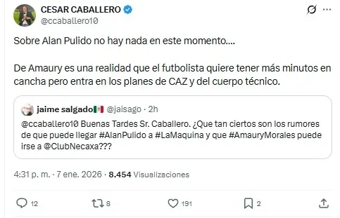 Uno de los futbolistas que Chivas busca encontrar acomodo antes de que se termine el mercado de pases es Alan Pulido. Ayer surgió la información de que Cruz Azul estaría interesado en el futbolista del Guadalajara, pero César Caballero, insider de la Máquina, reportó que de momento no hay nada por el atacante.