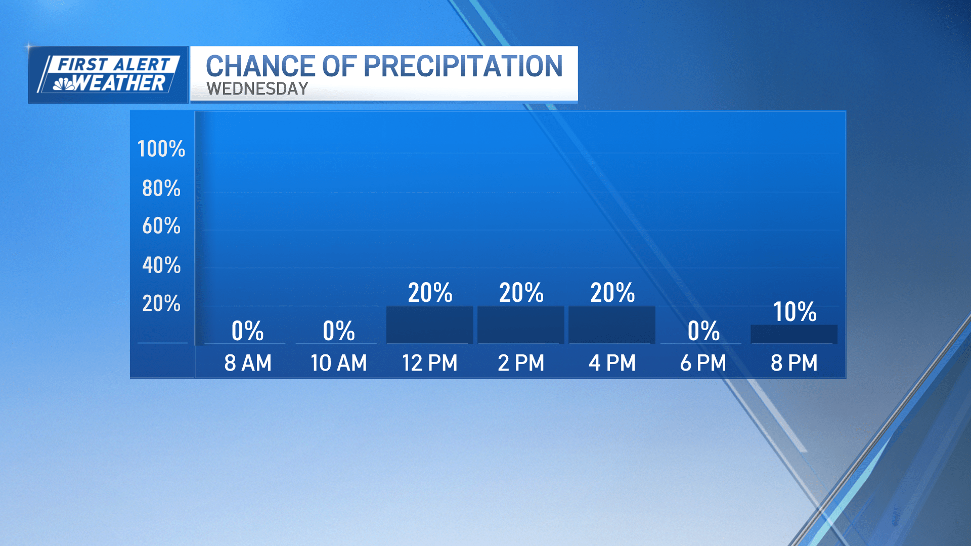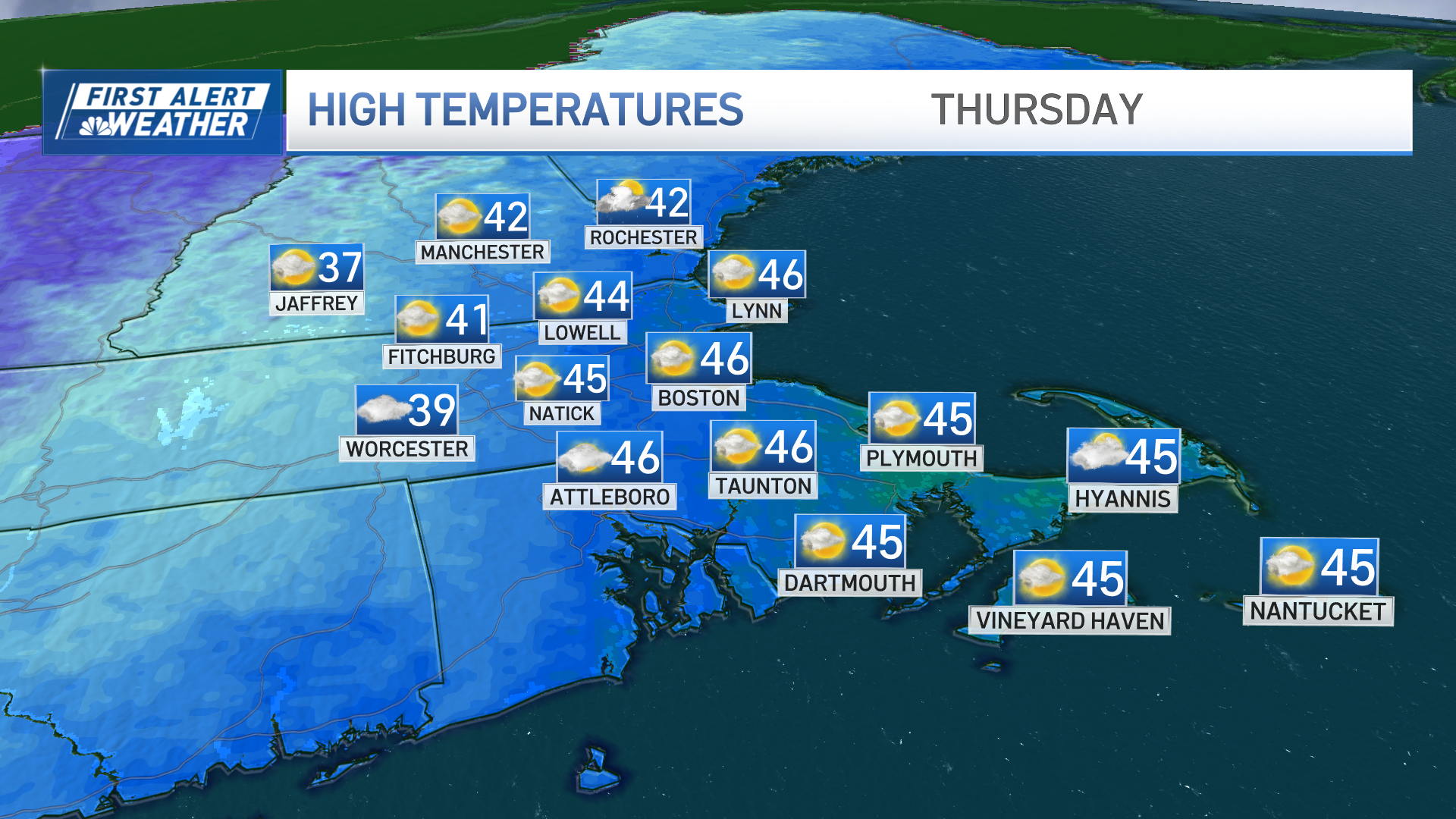 A sharp cold front will slice through early on Thursday. While we still manage to make the mid-40s, we won’t stay there for long. Temperatures tumble back to the 30s in the afternoon, with 20s expected later in the evening.