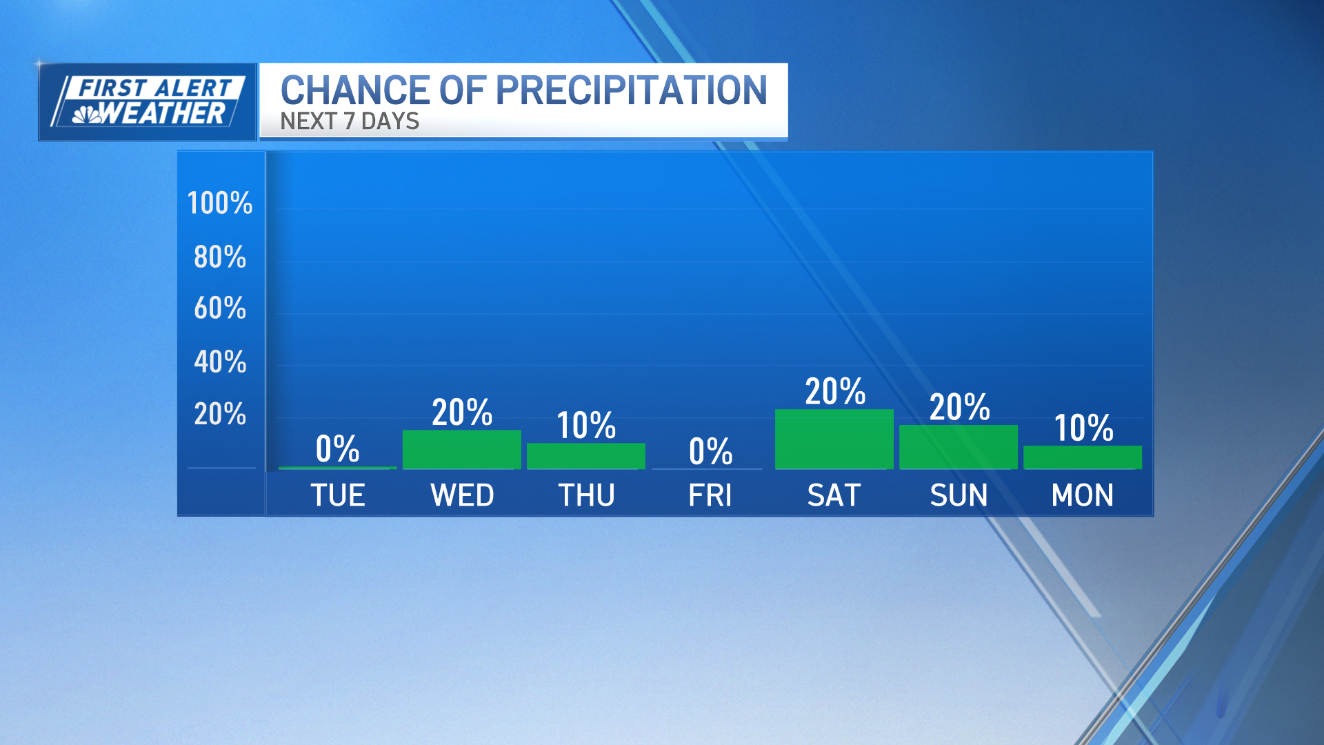 It stays cold and dry with another shift in the storm track by the end of the week. Too soon to speculate about what may get thrown at us, but we’re surely staying vigilant.
