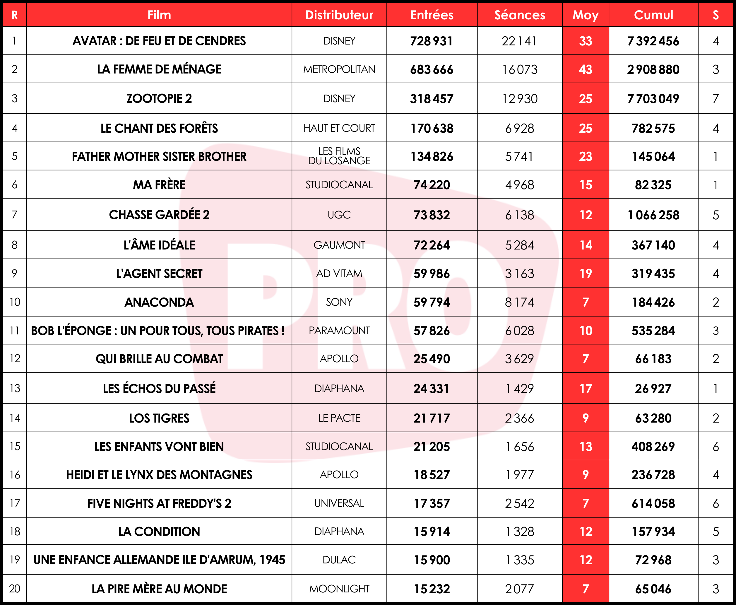 The post Box-office hebdo : <i>Avatar : De feu et de cendres</i> reste maître appeared first on Boxoffice Pro.