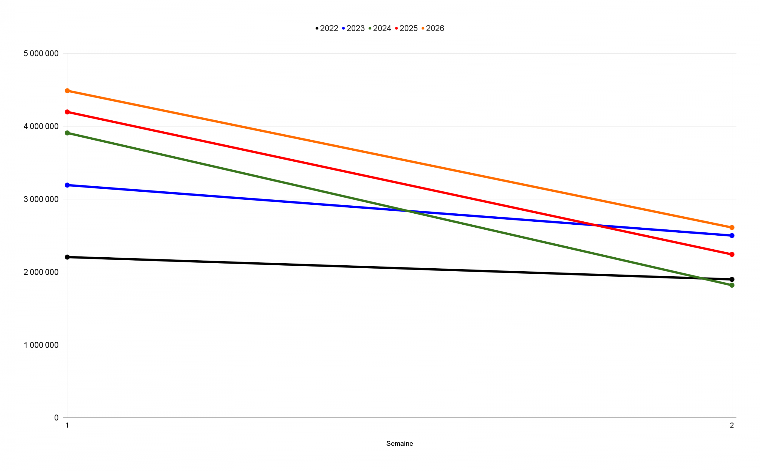 Au total, le top 20 hebdomadaire réalise 2,6 M d’entrées, soit une baisse de 41,8 % par rapport à la semaine dernière, logique avec la fin des vacances scolaires. Il s’agit toutefois de la meilleure performance post-Covid observée sur la deuxième semaine de l’année, supérieure de 4,4 % à 2023 (2,5 M) et de 16,5 % à 2025 (2,2 M).