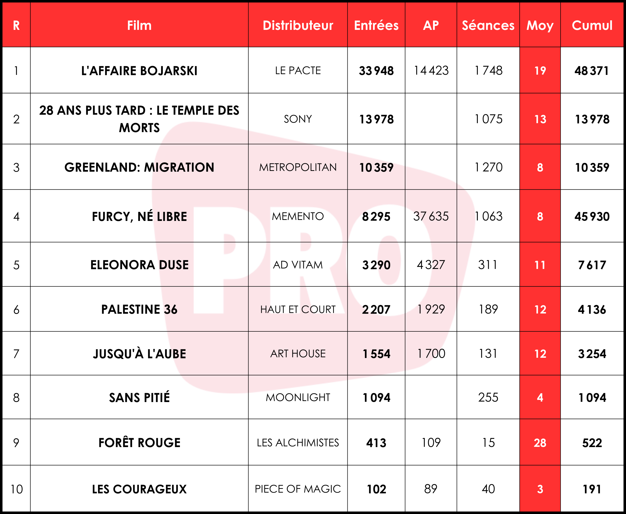 The post Box-office 1er jour : <i>L’Affaire Bojarski</i> remporte le pactole appeared first on Boxoffice Pro.